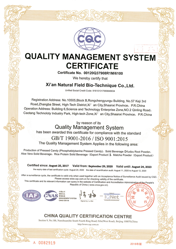 生產基地位于西安科技企業加速器B區草堂工業園。擁有標準化車間,標準提取物、健康食品原料以及化妝品原料的生產線,目前獲得專利10多項,多個產品取得了HACCP、HALAL、ISO9001、KOSHER、歐盟有機證、美國有機證等多項證書。